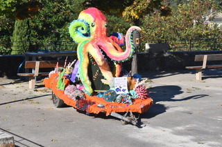 L'association Empreintes a démontré une grande créativité avec ses créations artisanales, ses dessins et ses livres inspirés du monde marin, notamment les fables de Gunter Pauli sur l'économie bleue. Une décoration monumentale, incluant un hippocampe et un poulpe géant, a particulièrement marqué les esprits. La journée a été rythmée par les danses de Zenda et le spectacle captivant « L’histoire du Poulpe cévenol ».